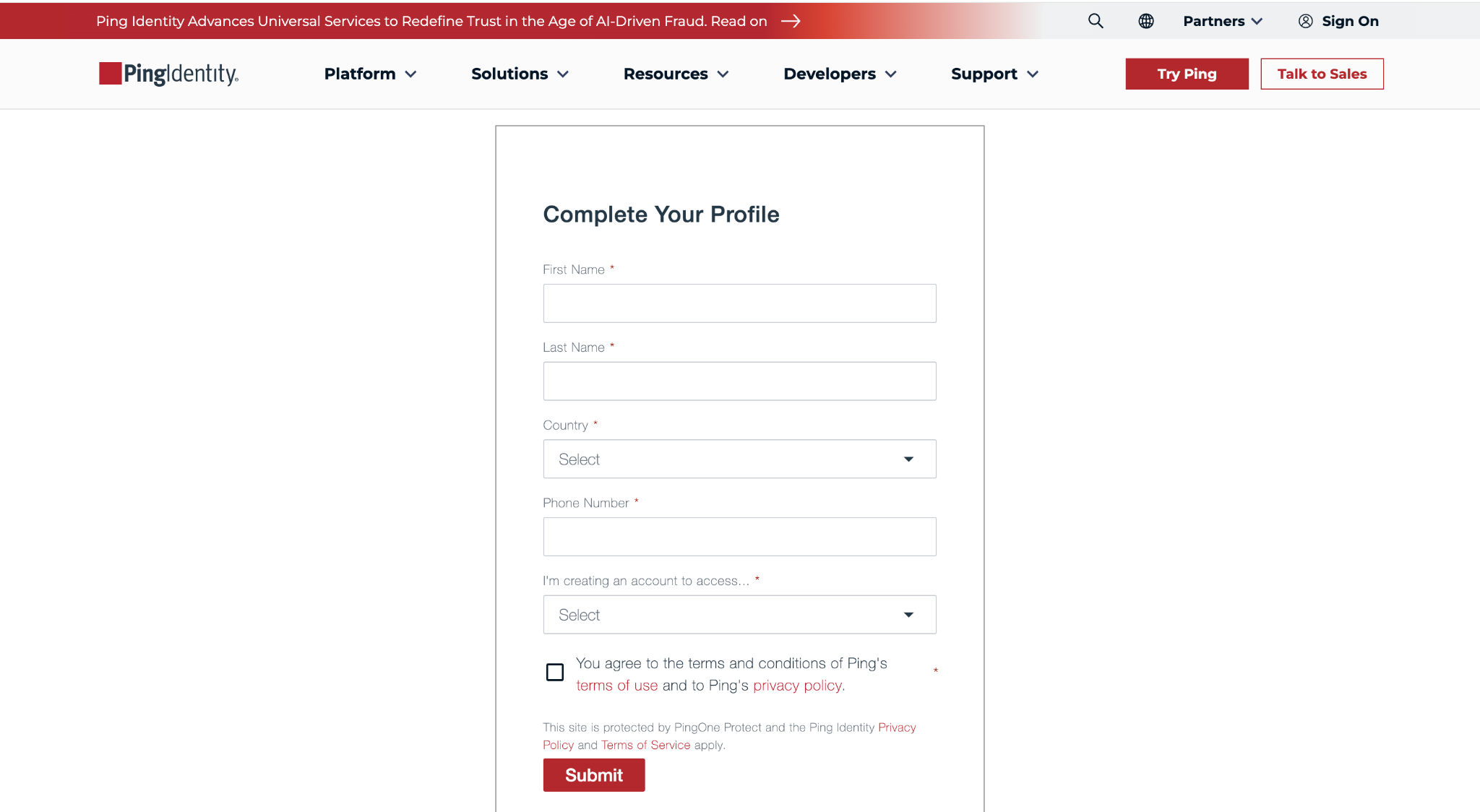 The next step is to sign in to your Ping Identity account